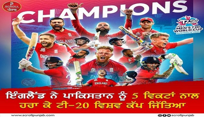 ਇੰਗਲੈਂਡ ਨੇ ਪਾਕਿਸਤਾਨ ਨੂੰ 5 ਵਿਕਟਾਂ ਨਾਲ ਹਰਾ ਕੇ ਟੀ-20 ਵਿਸ਼ਵ ਕੱਪ ਜਿੱਤਿਆ