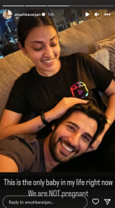 ਅਨੁਸ਼ਕਾ ਰੰਜਨ ਅਤੇ ਆਦਿਤਿਆ ਸੀਲ ਇੰਡਸਟਰੀ ਦੇ ਪਾਵਰ ਕਪਲਸ ਵਿੱਚੋਂ ਇੱਕ ਹਨ। ਪਿਛਲੇ ਦਿਨੀਂ ਜੋੜੇ ਬਾਰੇ ਇੱਕ ਖਬਰ ਤੇਜ਼ੀ ਨਾਲ ਫੈਲ ਗਈ ਕਿ ਉਹ ਆਪਣੇ ਪਹਿਲੇ ਬੱਚੇ ਦੀ ਯੋਜਨਾ ਬਣਾ ਰਹੇ ਹਨ। ਹਾਲਾਂਕਿ ਹੁਣ ਅਨੁਸ਼ਕਾ ਰੰਜਨ ਨੇ ਇਸ ‘ਤੇ ਇਕ ਸ਼ਾਨਦਾਰ ਤਸਵੀਰ ਸ਼ੇਅਰ ਕਰਕੇ ਆਪਣੇ ਨੋਟ ਨਾਲ ਟ੍ਰੋਲਰਾਂ ਦੀ ਬੋਲਤੀ ਬੰਦ ਕਰ ਦਿੱਤੀ ਹੈ। ਅਨੁਸ਼ਕਾ ਰੰਜਨ ਨੇ ਆਪਣੀ ਇੰਸਟਾਗ੍ਰਾਮ ਸਟੋਰੀ ਰਾਹੀਂ ਤੇਜ਼ੀ ਨਾਲ ਫੈਲ ਰਹੀ ਗਰਭ ਅਵਸਥਾ ਦੀ ਅਫਵਾਹ ‘ਤੇ ਚੁੱਪੀ ਤੋੜੀ ਹੈ। ਅਨੁਸ਼ਕਾ ਨੇ 9 ਜਨਵਰੀ 2023 ਨੂੰ ਪਤੀ ਆਦਿਤਿਆ ਸੀਲ ਨਾਲ ਇੱਕ ਤਸਵੀਰ ਸ਼ੇਅਰ ਕੀਤੀ ਸੀ। ਨਾਲ ਹੀ, ਨੋਟ ਇਨ੍ਹਾਂ ਅਫਵਾਹਾਂ ਨੂੰ ਖਤਮ ਕਰਨ ਲਈ ਦੇਖਿਆ ਗਿਆ ਹੈ। ਅਨੁਸ਼ਕਾ ਦੀ ਪੋਸਟ ਤੋਂ ਸਾਫ਼ ਹੈ ਕਿ ਇਹ ਅਫਵਾਹਾਂ ਬੇਬੁਨਿਆਦ ਹਨ ਅਤੇ ਦੋਵੇਂ ਇਸ ਸਮੇਂ ਇੱਕ ਜੋੜੇ ਵਜੋਂ ਆਪਣੀ ਜ਼ਿੰਦਗੀ ਦਾ ਆਨੰਦ ਲੈਣਾ ਚਾਹੁੰਦੇ ਹਨ। ਅਨੁਸ਼ਕਾ ਰੰਜਨ ਵਲੋਂ ਸ਼ੇਅਰ ਕੀਤੀ ਗਈ ਤਸਵੀਰ ‘ਚ ਆਦਿਤਿਆ ਸੀਲ ਅਨੁਸ਼ਕਾ ਰੰਜਨ ਦੀ ਗੋਦ ‘ਚ ਸਿਰ ਰੱਖ ਕੇ ਸੌਂਦੇ ਨਜ਼ਰ ਆ ਰਹੇ ਹਨ। ਉਥੇ ਹੀ ਇਸ ਤਸਵੀਰ ਦੇ ਨਾਲ ਅਨੁਸ਼ਕਾ ਨੇ ਨੋਟ ‘ਚ ਲਿਖਿਆ ਹੈ, ‘ਇਸ ਸਮੇਂ ਮੇਰੀ ਜ਼ਿੰਦਗੀ ‘ਚ ਇਹ ਇਕਲੌਤਾ ਬੱਚਾ ਹੈ। ਮੈਂ ਗਰਭਵਤੀ ਨਹੀਂ ਹਾਂ! ਦੱਸ ਦੇਈਏ ਕਿ ਅਨੁਸ਼ਕਾ ਰੰਜਨ ਅਤੇ ਆਦਿਤਿਆ ਸੀਲ ਲੰਬੇ ਸਮੇਂ ਤੱਕ ਡੇਟ ਕਰਨ ਤੋਂ ਬਾਅਦ ਨਵੰਬਰ 2021 ਵਿੱਚ ਵਿਆਹ ਦੇ ਬੰਧਨ ਵਿੱਚ ਬੱਝ ਗਏ ਸਨ।