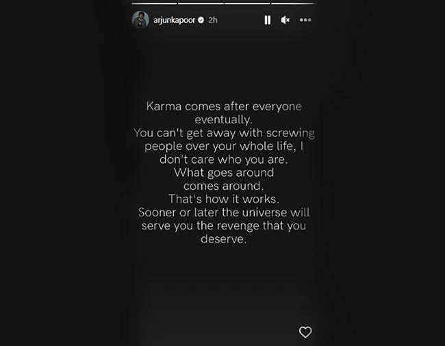 ਬਾਲੀਵੁੱਡ ਅਦਾਕਾਰਾ ਮਲਾਇਕਾ ਅਰੋੜਾ ਅਤੇ ਅਰਜੁਨ ਕਪੂਰ ਆਪਣੇ ਪ੍ਰੇਮ ਸਬੰਧਾਂ ਨੂੰ ਲੈ ਕੇ ਸੁਰਖੀਆਂ ‘ਚ ਬਣੇ ਰਹਿੰਦੇ ਹਨ। ਹਾਲ ਹੀ ‘ਚ ਮਲਾਇਕਾ ਦੇ ਪ੍ਰੈਗਨੈਂਸੀ ਦੀਆਂ ਖਬਰਾਂ ਸੋਸ਼ਲ ਮੀਡੀਆ ‘ਤੇ ਆਉਣ ਲੱਗੀਆਂ, ਜਿਸ ਤੋਂ ਬਾਅਦ ਅਰਜੁਨ ਕਪੂਰ ਨੇ ਗੁੱਸੇ ‘ਚ ਆ ਕੇ ਮੀਡੀਆ ਹਾਊਸ ‘ਤੇ ਫੇਕ ਨਿਊਜ਼ ਫੈਲਾਉਣ ਵਾਲਿਆਂ ਦੀ ਕਲਾਸ ਲਗਾਈ। ਪਰ ਲੱਗਦਾ ਹੈ ਕਿ ਅਰਜੁਨ ਦਾ ਗੁੱਸਾ ਅਜੇ ਸ਼ਾਂਤ ਨਹੀਂ ਹੋਇਆ ਹੈ। ਅਰਜੁਨ ਨੇ ਇੰਸਟਾ ਸਟੋਰੀ ‘ਤੇ ਇਕ ਕ੍ਰਿਪਟਿਕ ਪੋਸਟ ਸ਼ੇਅਰ ਕੀਤੀ ਹੈ। ਇਸ ‘ਚ ਉਨ੍ਹਾਂ ਨੇ ਫਿਰ ਤੋਂ ਆਪਣੀ ਨਾਰਾਜ਼ਗੀ ਜ਼ਾਹਰ ਕਰਦੇ ਹੋਏ ਗੱਲ ਕੀਤੀ ਹੈ। ਪੋਸਟ ‘ਚ ਅਰਜੁਨ ਕਪੂਰ ਨੇ ਲਿਖਿਆ- ਹਰ ਕਿਸੇ ਨੂੰ ਆਪਣੇ ਕਰਮਾਂ ਦਾ ਹਿਸਾਬ ਮਿਲਦਾ ਹੈ। ਤੁਸੀਂ ਆਪਣੀ ਪੂਰੀ ਜ਼ਿੰਦਗੀ ਲੋਕਾਂ ਨਾਲ ਗੜਬੜ ਨਹੀਂ ਕਰ ਸਕਦੇ। ਮੈਨੂੰ ਪਰਵਾਹ ਨਹੀਂ ਕਿ ਤੁਸੀਂ ਕੌਣ ਹੋ। ਕੰਮਾਂ ਦੇ ਨਤੀਜੇ. ਇਸ ਤਰ੍ਹਾਂ ਚੀਜ਼ਾਂ ਚਲਦੀਆਂ ਹਨ। ਜਲਦੀ ਜਾਂ ਬਾਅਦ ਵਿੱਚ, ਬ੍ਰਹਿਮੰਡ ਤੁਹਾਨੂੰ ਤੁਹਾਡੇ ਕੰਮਾਂ ਦਾ ਫਲ ਦੇਵੇਗਾ। ਅਰਜੁਨ ਕਪੂਰ ਦੀ ਇਸ ਪੋਸਟ ਤੋਂ ਸਾਫ ਹੈ ਕਿ ਉਹ ਅਜੇ ਵੀ ਆਪਣੀ ਪ੍ਰੇਮਿਕਾ ਬਾਰੇ ਫੈਲੀਆਂ ਗਲਤ ਖਬਰਾਂ ਤੋਂ ਦੁਖੀ ਹਨ।