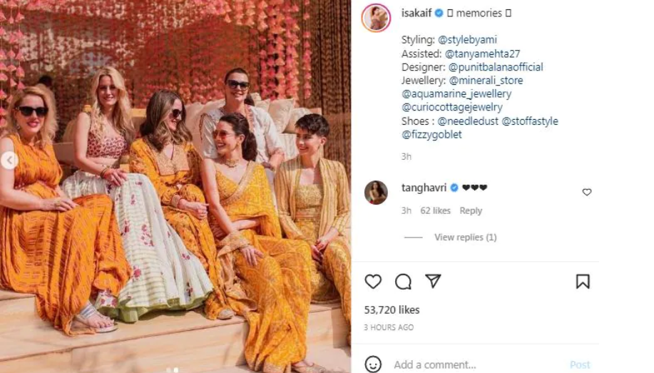 ਇਹ ਫੋਟੋ ਵਿੱਕੀ ਕੌਸ਼ਲ ਅਤੇ ਕੈਟਰੀਨਾ ਕੈਫ ਦੇ ਵਿਆਹ ਦੀ ਹੈ ਅਤੇ ਇਸ ਦੇ ਨਾਲ ਇਜ਼ਾਬੇਲ ਨੇ ਲਿਖਿਆ ਹੈ, ‘ਯਾਦਾਂ।’ ਇਹ ਤਸਵੀਰਾਂ ਕੈਟਰੀਨਾ ਕੈਫ ਦੀ ਹਲਦੀ ਰਸਮ ਦੀਆਂ ਨੇ। ਇਹ ਅਣਦੇਖੀਆਂ ਤਸਵੀਰਾਂ ਸੋਸ਼ਲ ਮੀਡੀਆ ਉੱਤੇ ਖੂਬ ਵਾਇਰਲ ਹੋ ਰਹੀਆਂ ਹਨ।