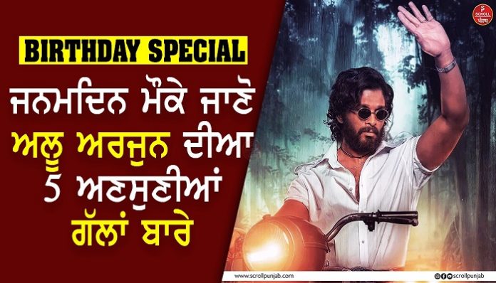 ਸਾਊਥ ਇੰਡਸਟਰੀ ਦੇ ‘ਆਈਕਨ ਸਟਾਰ’ ਅਲੂ ਅਰਜੁਨ ਅੱਜ ਆਪਣਾ 40ਵਾਂ ਜਨਮਦਿਨ ਮਨਾ ਰਹੇ ਹਨ। ਟਾਲੀਵੁੱਡ ਇੰਡਸਟਰੀ ‘ਚ ਉਨ੍ਹਾਂ ਦਾ ਨਾਂ ਗੂੰਜਦਾ ਹੈ ਪਰ ਹੁਣ ‘ਪੁਸ਼ਪਾ ਦਿ ਰਾਈਜ਼’ ਦੇ ਸ਼ਾਨਦਾਰ ਪ੍ਰਦਰਸ਼ਨ ਤੋਂ ਬਾਅਦ ਉਨ੍ਹਾਂ ਨੇ ਹਿੰਦੀ ਸਿਨੇਮਾ ‘ਚ ਵੀ ਆਪਣੀ ਖਾਸ ਪਛਾਣ ਬਣਾ ਲਈ ਹੈ। ਅੱਲੂ ਅਰਜੁਨ ਨੇ 3 ਸਾਲ ਦੀ ਉਮਰ ਤੋਂ ਫਿਲਮਾਂ ‘ਚ ਕੰਮ ਕਰਨਾ ਸ਼ੁਰੂ ਕਰ ਦਿੱਤਾ ਸੀ। 8 ਅਪ੍ਰੈਲ 1982 ਨੂੰ ਮਦਰਾਸ ਦੇ ਇੱਕ ਤਾਮਿਲ ਪਰਿਵਾਰ ਵਿੱਚ ਜਨਮੇ ਅੱਲੂ ਅਰਜੁਨ ਦੀ ਉਮਰ ਸਿਰਫ਼ 3 ਸਾਲ ਸੀ ਜਦੋਂ ਉਹ ਪਹਿਲੀ ਵਾਰ ਕੈਮਰੇ ਦੇ ਸਾਹਮਣੇ ਆਏ। ਉਸ ਸਮੇਂ ਛੋਟੇ ਆਲੂ ਅਰਜੁਨ ਨੇ 1985 ‘ਚ ਰਿਲੀਜ਼ ਹੋਈ ਫਿਲਮ ‘ਵਿਜੇਤਾ’ ‘ਚ ਬਾਲ ਕਲਾਕਾਰ ਵਜੋਂ ਕੰਮ ਕੀਤਾ ਸੀ।