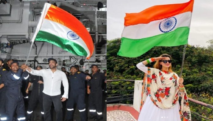 ਬਾਲੀਵੁੱਡ ਇੰਡਸਟਰੀ ਇੱਕ ਅਜਿਹੀ ਇੰਡਸਟਰੀ ਹੈ ਜੋ ਹਰ ਕੰਮ ਵਿੱਚ ਉਤਸ਼ਾਹ ਨਾਲ ਹਿੱਸਾ ਲੈਂਦੀ ਹੈ। ਅੱਜ ਸੁਤੰਤਰਤਾ ਦਿਵਸ ਹੈ। ਇਸ ਖਾਸ ਮੌਕੇ ‘ਤੇ ਪੂਰਾ ਬਾਲੀਵੁੱਡ ਆਜ਼ਾਦੀ ਦੇ ਜਸ਼ਨ ‘ਚ ਡੁੱਬਿਆ ਹੋਇਆ ਹੈ। ਇਸ ਖਾਸ ਮੌਕੇ ‘ਤੇ ਬਾਲੀਵੁੱਡ ਦੇ ਕਈ ਮਸ਼ਹੂਰ ਸਿਤਾਰੇ ਹਰ ਦੇਸ਼ ਵਾਸੀ ਨੂੰ ਸੁਤੰਤਰਤਾ ਦਿਵਸ ਦੀਆਂ ਸ਼ੁਭਕਾਮਨਾਵਾਂ ਦੇ ਰਹੇ ਹਨ। ਇਸ ਦੇ ਨਾਲ ਹੀ ਝੰਡਾ ਲਹਿਰਾ ਕੇ ਤਿਰੰਗੇ ਦਾ ਮਾਣ ਵਧਾਇਆ ਹੈ। ਸਲਮਾਨ ਖਾਨ ਨੇ ਆਪਣੇ ਟਵਿਟਰ ਹੈਂਡਲ ‘ਤੇ ਇਕ ਤਸਵੀਰ ਸ਼ੇਅਰ ਕੀਤੀ ਹੈ ਜਿਸ ‘ਚ ਉਹ ਤਿਰੰਗਾ ਲਹਿਰਾ ਰਹੇ ਹਨ। ਇਸ ਦੇ ਨਾਲ ਹੀ ਅਦਾਕਾਰ ਨੇ ਲੋਕਾਂ ਨੂੰ ਸੁਤੰਤਰਤਾ ਦਿਵਸ ਦੀ ਵਧਾਈ ਵੀ ਦਿੱਤੀ ਹੈ।