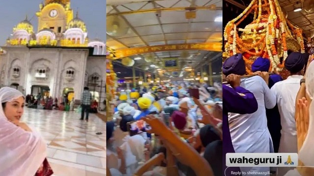 ਮਸ਼ਹੂਰ ਪੰਜਾਬੀ ਅਦਾਕਾਰਾ ਸ਼ਹਿਨਾਜ਼ ਗਿੱਲ ਸੋਸ਼ਲ ਮੀਡੀਆ ਰਾਹੀਂ ਆਪਣੇ ਫੈਨਜ਼ ਨਾਲ ਰੁਬਰੂ ਹੁੰਦੀ ਰਹਿੰਦੀ ਹੈ। ਹਾਲ ਹੀ ਵਿੱਚ ਸ਼ਹਿਨਾਜ਼ ਗਿੱਲ ਨੇ ਆਪਣੇ ਇੰਸਟਾਗ੍ਰਾਮ ‘ਤੇ ਇੱਕ ਪੋਸਟ ਕੀਤੀ ਹੈ। ਇਸ ਵਿੱਚ ਸ਼ਹਿਨਾਜ਼ ਆਪਣੇ ਪਰਿਵਾਰ ਸਣੇ ਸੱਚਖੰਡ ਸ੍ਰੀ ਹਰਿਮੰਦਰ ਸਾਹਿਬ ਨਤਮਸਤਕ ਹੋਣ ਪੁੱਜੀ ਹੈ। ਸ਼ਹਿਨਾਜ਼ ਨੇ ਮੱਥਾ ਟੇਕਿਆ ਤੇ ਸਰਬੱਤ ਦੇ ਭਲੇ ਲਈ ਅਰਦਾਸ ਕੀਤੀ। ਮੱਥਾ ਟੇਕਣ ਤੋਂ ਬਾਅਦ ਉਨ੍ਹਾਂ ਗੁਰਬਾਣੀ ਦਾ ਸਰਵਣ ਕੀਤਾ। ਸ਼ਹਿਨਾਜ਼ ਗਿੱਲ ਨੇ ਆਪਣੇ ਇੰਸਟਾਗ੍ਰਾਮ ਅਕਾਉਂਟ ਉੱਤੇ ਸੱਚਖੰਡ ਹਰਿਮੰਦਰ ਸਾਹਿਬ ਦੀਆਂ ਤਸਵੀਰਾਂ ਸ਼ੇਅਰ ਕੀਤੀਆਂ ਹਨ। ਇਥੇ ਉਹ ਹਰਿਮੰਦਰ ਸਾਹਿਬ ਦੇ ਪਰਿਸਰ ਵਿੱਚ ਬੈਠੀ ਹੋਈ ਨਜ਼ਰ ਆਈ।