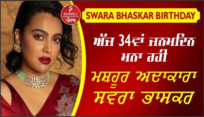 ਬਾਲੀਵੁੱਡ ਦੀ ਮਸ਼ਹੂਰ ਅਤੇ ਦਮਦਾਰ ਅਦਾਕਾਰਾ ਸਵਰਾ ਭਾਸਕਰ ਅੱਜ ਯਾਨੀ 9 ਅਪ੍ਰੈਲ ਨੂੰ ਆਪਣਾ 34ਵਾਂ ਜਨਮਦਿਨ ਸੈਲੀਬ੍ਰੇਟ ਕਰਨ ਜਾ ਰਹੀ ਹੈ। 9 ਅਪ੍ਰੈਲ 1988 ਨੂੰ ਦਿੱਲੀ ਵਿੱਚ ਜਨਮੀ ਸਵਰਾ ਨੇ ਆਪਣੀ ਅਦਾਕਾਰੀ ਦੀ ਸ਼ੁਰੂਆਤ 2009 ਵਿੱਚ ਆਈ ਫਿਲਮ ਮਾਧੋਲਾਲ ਕੀਪ ਵਾਕਿੰਗ ਨਾਲ ਕੀਤੀ ਪਰ ਕੰਗਨਾ ਰਣੌਤ ਸਟਾਰਰ ਫਿਲਮ ਤਨੂ ਵੈਡਸ ਮਨੂ ਤੋਂ ਪਛਾਣ ਮਿਲੀ। ਸਵਰਾ ਨੇ ਬਾਕਸ ਆਫਿਸ ‘ਤੇ ਰਿਕਾਰਡ ਤੋੜ ਕਮਾਈ ਕਰਨ ਵਾਲੀ ਵਿਵੇਕ ਅਗਨੀਹੋਤਰੀ ਦੀ ਫਿਲਮ ‘ਦਿ ਕਸ਼ਮੀਰ ਫਾਈਲਜ਼’ ਖਿਲਾਫ ਟਵੀਟ ਰਾਹੀਂ ਵਿਵੇਕ ਅਗਨੀਹੋਤਰੀ ‘ਤੇ ਨਿਸ਼ਾਨਾ ਸਾਧਿਆ ਸੀ।
