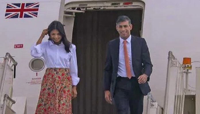 ਜੀ-20 ਸੰਮੇਲਨ ਲਈ ਪਤਨੀ ਨਾਲ ਦਿੱਲੀ ਪਹੁੰਚੇ ਬ੍ਰਿਟਿਸ਼ ਪ੍ਰਧਾਨ ਮੰਤਰੀ ਰਿਸ਼ੀ ਸੁਨਕ