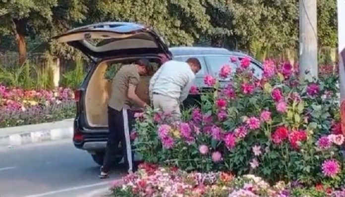 1 ਮਿੰਟ 7 ਸੈਕਿੰਡ ਦਾ ਵਾਇਰਲ ਵੀਡੀਓ ਗੁਰੂਗ੍ਰਾਮ ਦੇ ਸ਼ੰਕਰ ਚੌਕ ਦਾ ਦੱਸਿਆ ਜਾ ਰਿਹਾ ਹੈ। ਵੀਡੀਓ ‘ਚ ਦੇਖਿਆ ਗਿਆ ਹੈ ਕਿ ਇੱਕ ਕਾਰ ਆ ਕੇ ਰੁਕਦੀ ਹੈ। ਕਾਰ ਤੋਂ ਦੋ ਵਿਅਕਤੀ ਹੇਠਾਂ ਉਤਰਦੇ ਹਨ। ਚੌਰਾਹੇ ‘ਤੇ ਸਜਾਵਟ ਲਈ ਰੱਖੇ ਵਿਸ਼ੇਸ਼ ਕਿਸਮ ਦੇ ਬੂਟੇ ਚੁੱਕ ਕੇ ਕਾਰ ਦੀ ਡਿੱਗੀ ਵਿੱਚ ਰੱਖਦੇ ਹਨ। ਪੌਦਿਆਂ ਨੂੰ ਕਾਰ ਵਿੱਚ ਰੱਖ ਕੇ ਉਹ ਕਾਰ ਸਮੇਤ ਫ਼ਰਾਰ ਹੋ ਗਿਆ। ਵੀਡੀਓ ਵਿੱਚ ਕਾਰ ਦਾ ਵੀਆਈਪੀ ਨੰਬਰ ਵੀ ਸਾਫ਼ ਦਿਖਾਈ ਦੇ ਰਿਹਾ ਹੈ। ਦੱਸ ਦਈਏ ਕਿ ਹਰਿਆਣਾ ਭਾਜਪਾ ਦੇ ਬੁਲਾਰੇ ਰਮਨ ਮਲਿਕ ਨੇ ਇਸ ਵੀਡੀਓ ਨੂੰ ਸ਼ੇਅਰ ਕੀਤਾ ਹੈ। ਉਨ੍ਹਾਂ ਨੇ ਗੁਰੂਗ੍ਰਾਮ ਪੁਲਿਸ-ਪ੍ਰਸ਼ਾਸਨ ਅਤੇ ਹਰਿਆਣਾ ਦੇ ਮੁੱਖ ਮੰਤਰੀ ਦਫ਼ਤਰ ਨੂੰ ਕਾਰਵਾਈ ਕਰਨ ਦੀ ਅਪੀਲ ਕੀਤੀ ਹੈ।