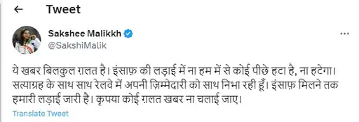 ਸ਼ਾਕਸ਼ੀ ਮਲਿਕ ਨੇ ਅੰਦੋਲਨ ਤੋਂ ਹੱਟਣ ਦੀਆਂ ਖ਼ਬਰਾਂ ਦਾ ਕੀਤਾ ਖੰਡਨ