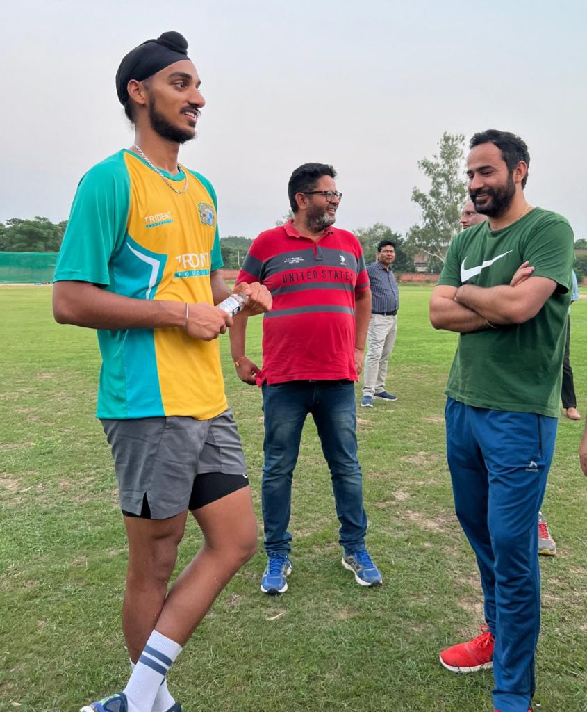 ਖੇਡ ਮੰਤਰੀ ਨੇ ਚੰਡੀਗੜ੍ਹ ਸਥਿਤ ਸੈਕਟਰ 24 ਦੇ ਕ੍ਰਿਕਟ ਗਰਾਊਂਡ ਵਿਖੇ ਅਰਸ਼ਦੀਪ ਸਿੰਘ ਨਾਲ ਮੁਲਾਕਾਤ ਕਰਦਿਆਂ ਉਸ ਵੱਲੋਂ ਥੋੜ੍ਹੇ ਸਮੇਂ ਵਿੱਚ ਹੀ ਆਪਣੇ ਕੌਮਾਂਤਰੀ ਕ੍ਰਿਕਟ ਕਰੀਅਰ ਵਿੱਚ ਬਿਹਤਰੀਨ ਪ੍ਰਦਰਸ਼ਨ ਸਦਕਾ ਛੱਡੀ ਛਾਪ ਲਈ ਵਧਾਈਆਂ ਦਿੱਤੀਆਂ। ਉਨ੍ਹਾਂ ਕਿਹਾ ਕਿ ਅਰਸ਼ਦੀਪ ਸਿੰਘ ਅੱਜ ਨੌਜਵਾਨਾਂ ਲਈ ਪ੍ਰੇਰਨਾ ਸ੍ਰੋਤ ਹੈ ਜਿਸ ਨੇ ਆਪਣੀ ਸਖ਼ਤ ਮਿਹਨਤ ਅਤੇ ਸਮਰਪਣ ਭਾਵਨਾ ਨਾਲ ਘਰੇਲੂ ਕ੍ਰਿਕਟ ਤੇ ਆਈ.ਪੀ.ਐਲ. ਵਿੱਚ ਚੰਗੇ ਪ੍ਰਦਰਸ਼ਨ ਨਾਲ ਟੀਮ ਵਿੱਚ ਜਗ੍ਹਾਂ ਬਣਾਈ ਅਤੇ 11 ਮੈਚਾਂ ਦੇ ਕੌਮਾਂਤਰੀ ਕਰੀਅਰ ਵਿੱਚ ਆਖਰੀ (ਡੈਥ) ਓਵਰਾਂ ਵਿੱਚ ਟੀਮ ਦਾ ਅਹਿਮ ਖਿਡਾਰੀ ਬਣ ਗਿਆ।